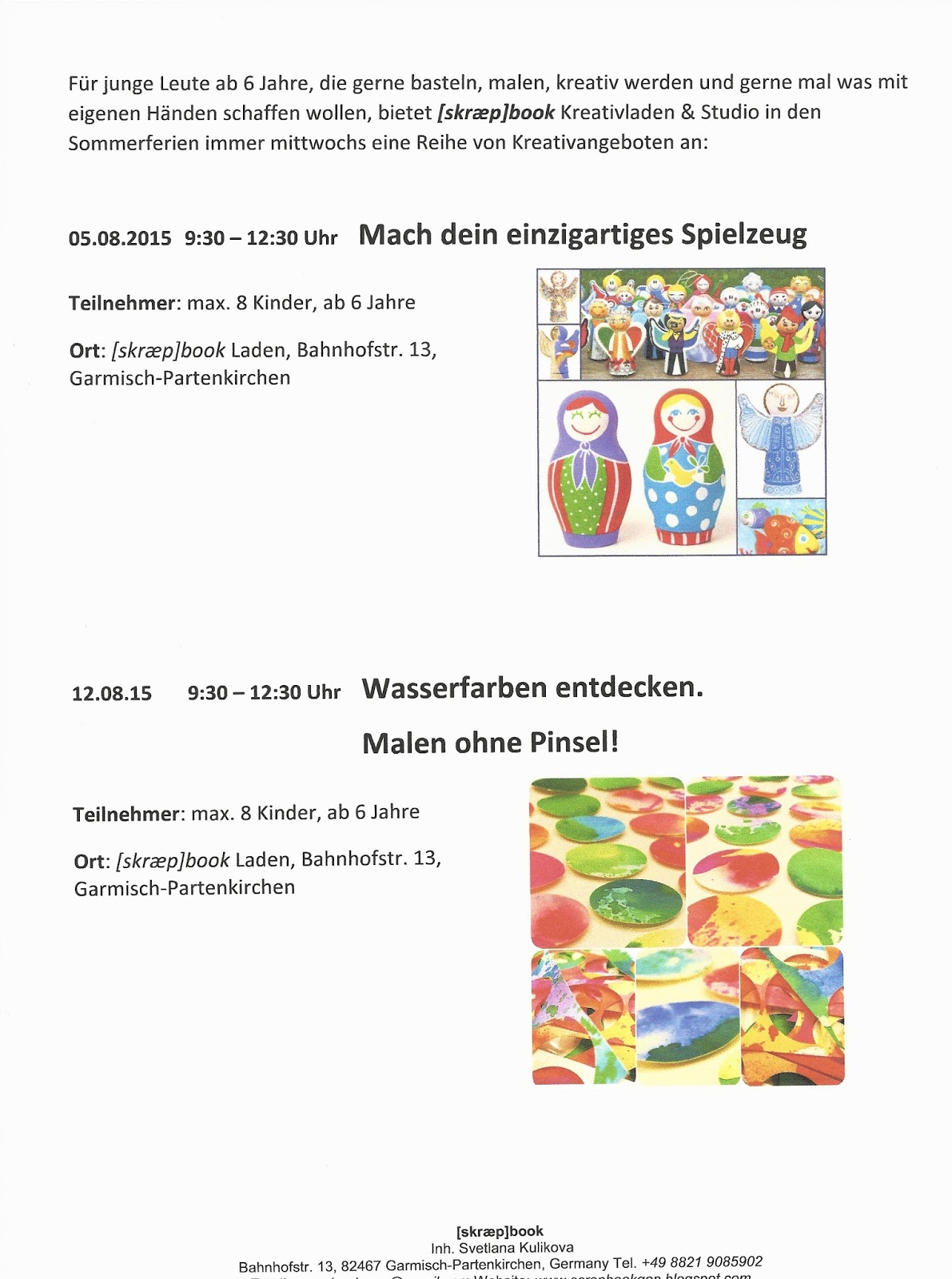 Kreativladen & Studio in Garmisch-Partenkirchen Scrapbooking - Kartengestalten - Mixed Media - Stanzen - Prägen - Kindergeburtstage - Workshops
